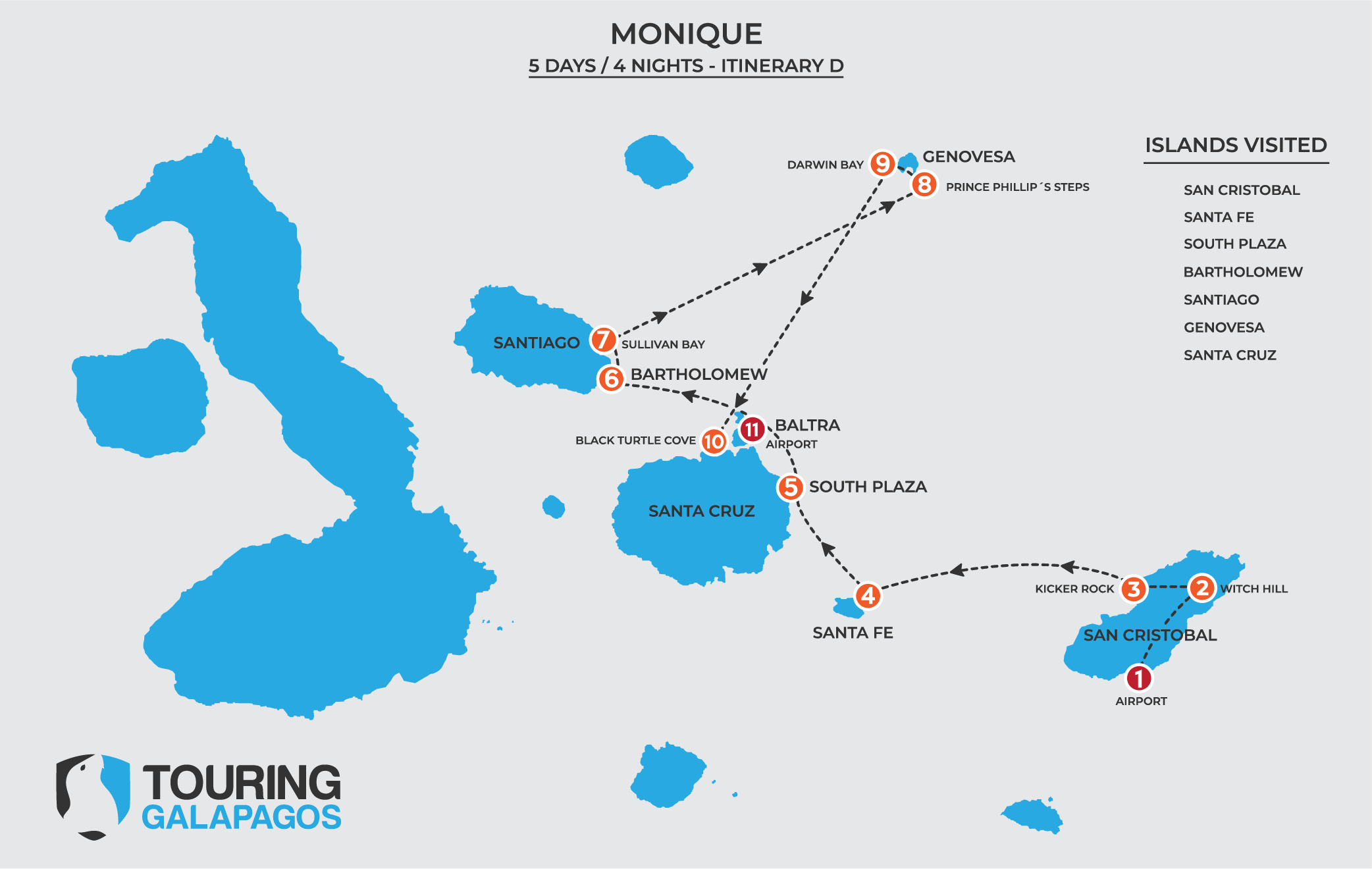 Arrive to San Cristobal / Interpretation Center / Witch Hill / Kicker RockMonday